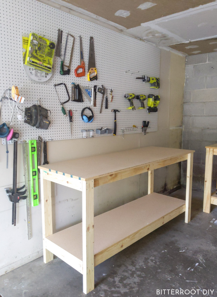 So today I have plans for his new workbench! It’s very simple and quick to build and you can adjust the dimensions to fit any space.