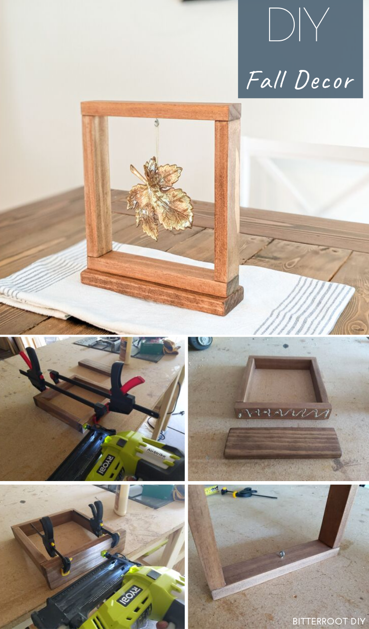 I’m not exactly sure what to call this, but this “framed leaf thingy” is so quick to put together. Just nail some boards, hang a faux leaf, and you’re good to go! It would look wonderful as a centerpiece or on a shelf.