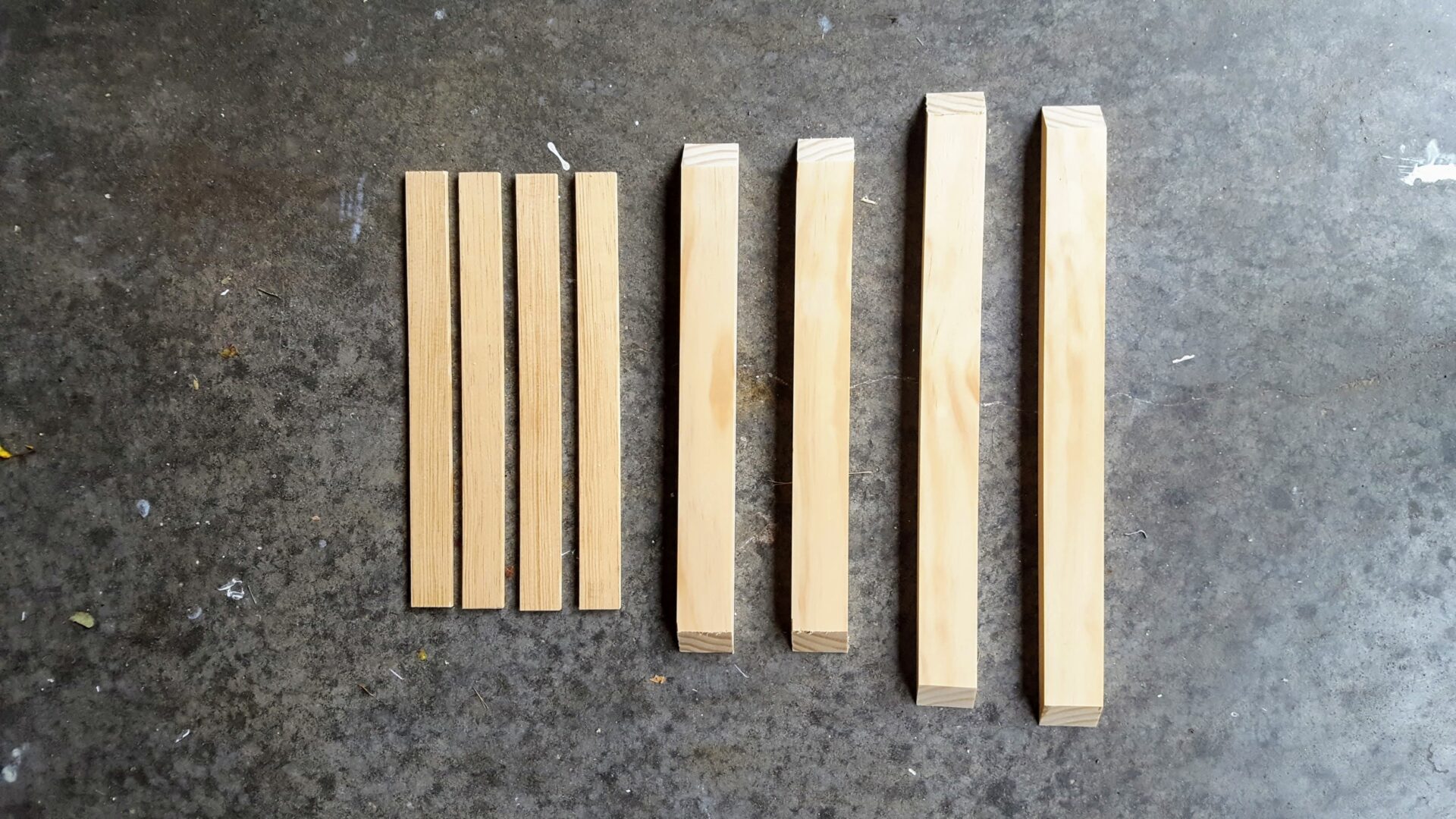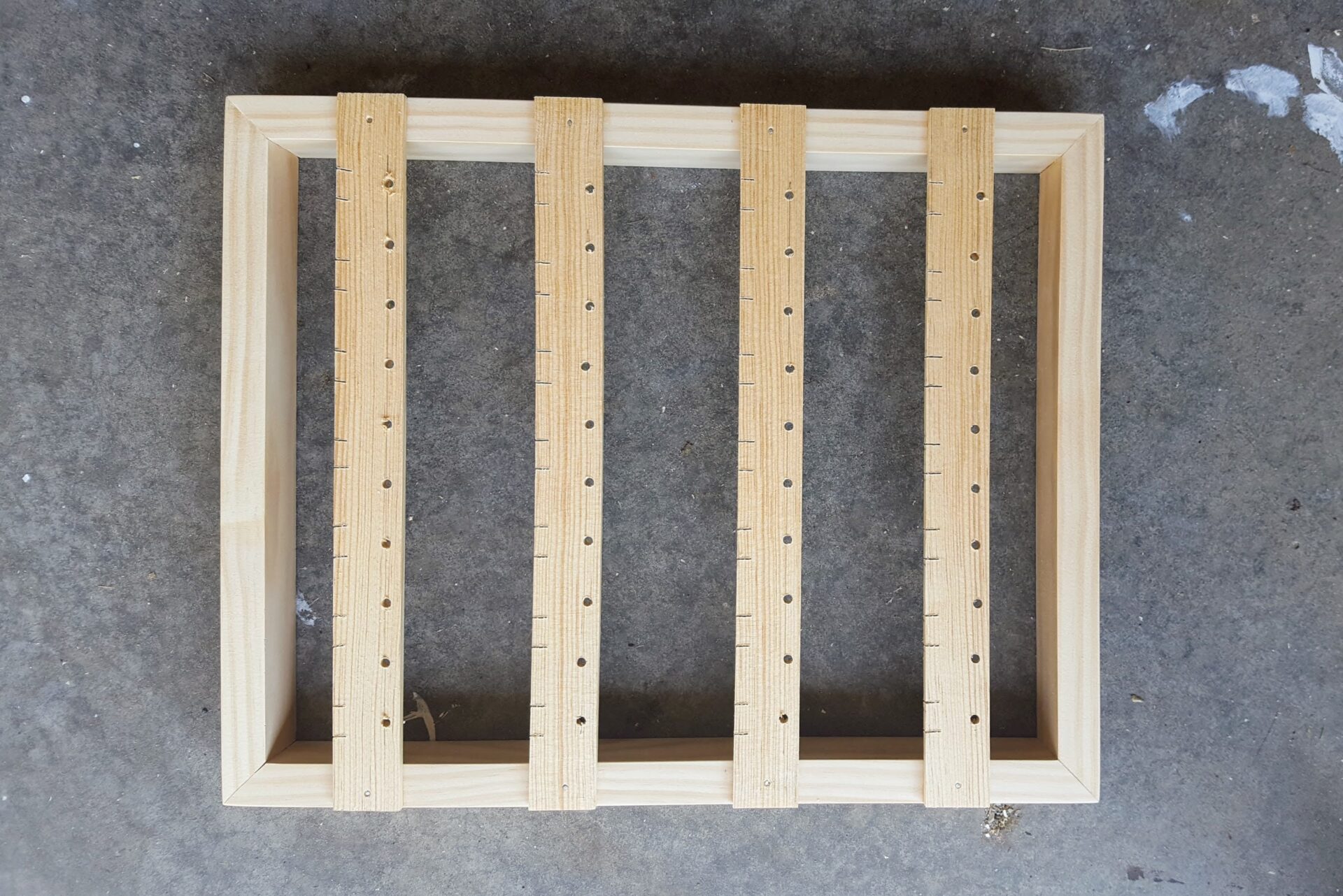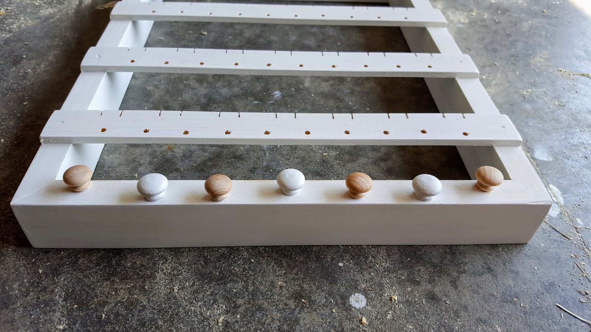 Once you have everything laid out, pre-drill holes for each of the pegs, insert, and attach with wood glue.