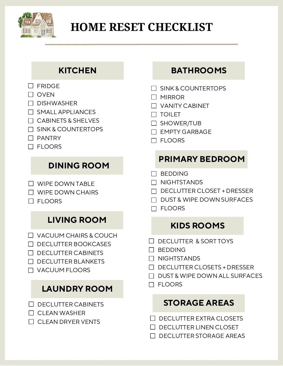 Home Reset Checklist